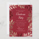 Una elegante invitación a una fiesta fiesta Navidad con ramas de pino de Relieve metalizado pintadas a mano en una paleta festiva de color rojo y oro diseñada por Stacey Meacham.