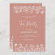 Celebre con estilo esta elegante invitación a tomar un té con deliciosas flores blancas dibujadas a mano sobre un suave fondo de rosa. Perfecto para fiestas de té de cumpleaños, duchas de novias y elegantes reuniones por la tarde, esta invitación combina el minimalismo moderno con el encanto atemporal. Personalizable fácil con los detalles de tu evento. Una buena elección para los amantes de la cabaña, los diseños femeninos y los temas florales.