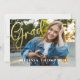 Esta invitación fotográfica de graduación presenta un impresionante guión de caligrafía dorada combinado con elementos de diseño simple y minimalista. Personalizar con el nombre de su graduado y la clase del año para crear un conservador atemporal. Perfecto como una invitación a un gran partido, destaca la elegancia de los estudiantes de secundaria o los logros de la universidad. Con su tipografía elegante, elegante y clásica, esta invitación capta la esencia de una ocasión monumental de una manera bellamente moderna.