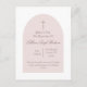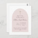 Celebra su día especial con esta invitación moderna al bautismo rosado. Presenta un estilo minimalista y un elegante detalle cruzado. Personalizable: edite texto y tipos de letra para adaptarlos a su evento. Perfecto para bautizos, bautizos o dedicaciones.