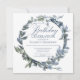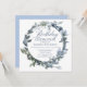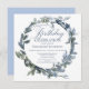 Una encantadora invitación de cumpleaños azul y verde que es perfecta para la ocasión. Este diseño presenta una delicada cortina acuarela, tipografía clásica y escritura delicada.