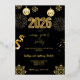 Elegante invitación al Relieve metalizado de Año Nuevo Negro y Oro Celebrar el Año Nuevo con estilo con esta elegante invitación de fiesta en negro y oro! Con sus brillantes globos dorados, su confeti y su festivo diseño de 2026, esta invitación al personalizable es perfecta para tomar un partido en Año Nuevo con amigos y familia. Ideal para glamorosos fiestas de Año Nuevo, reuniones de vacaciones o celebraciones formales. Personalice con los detalles de su fiesta una moda y una invitación memorable.