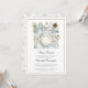 Elegante Navidad Holiday Baby Brunch Baby Shower Invitation - con un elegante ambiente de color dorado con acentos azules de espuma y vegetación natural. También se presenta una caligrafía de escritura elegante. La invitación formará parte de una colección.