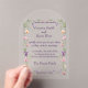 Celebra tu día especial con la belleza intemporal de nuestra Elegante Invitación a la Boda Acrílica. Con un delicado borde de flores silvestres pintadas a mano en suaves rosa, morado y verde, esta invitación transparente ofrece una manera única y sofisticada de invitar a sus huéspedes. Perfecto para bodas en el jardín, celebraciones de primavera o románticas ceremonias al aire libre, este diseño combina la elegancia moderna con el encanto natural. Personalizar con tus datos personales para crear un aguijón que será apreciado para siempre.