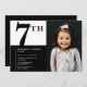 Elegante invitación de 7 años Moda negra Moderna caligrafía tipografía chica clásico elegante