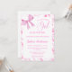 Celebra la próxima llegada de una niña pequeña con estilo con esta encantadora invitación a la ducha de bebé. Con un arco rosa pintado a mano y un suave borde de acuarela, este diseño combina a la perfección elegancia y diversión. Personaliza el texto para que se ajuste a tus detalles del evento, y ducha a la futura madre con amor y alegría. Ideal para las duchas infantiles modernas, clásicas o de temática dulce.