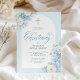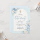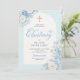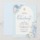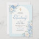 Elegante Invitación de Bautizo Floral Azul con Cr