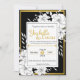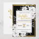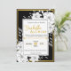 Fije el tono de su sofisticado boda con esta elegante invitación floral a la boda. Con sus intrincados ilustraciones florales sobre un fondo negro con un lujoso borde dorado, este diseño desprende elegancia y romanticismo intemporales. Perfecto para bodas formales, clásicos o modernos, esta invitación es totalmente personalizable: personaliza el texto, los tipos de letra y el diseño para que coincidan con el tema boda. Impresiona a tus huéspedes con esta impresionante invitación a una boda.