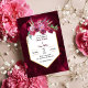 flores magenta rosa y borgoñona y deja la invitación a la boda. Este diseño boda bonito muestra un marco dorado con rosas acuarelas y follaje en tonos rosa y burdeos. La parte posterior es un rosa de color rosa magenta.