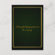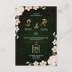 Haz que tu día de boda sea aún más especial con esta elegante invitación de boda floral. Diseñada con un impresionante fondo verde oscuro y delicados acentos dorados, esta tarjeta de respuesta añade un toque de clase y encanto a tu gran día. Personalízala con tus nombres, detalles de la boda y notas especiales para los invitados.