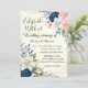 Elegante Invitación de Boda Floral Rosa y Azul Mar