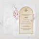 Elegante Invitación de Boda Nikkah con la sagrada Bismillah, brillo de mármol y arte de magnolias en acuarela.