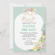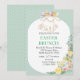 Elegante Invitación de brunch verde de la Moneda Floral de Pascua. Envíe a sus invitados de brunch esta deliciosa invitación con un conejito en un bonete de Pascua lleno de flores. Los bonitos colores pastel son perfectos para la primavera.