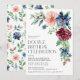 ¡Celebre con estilo con nuestra impresionante Invitación de Cumpleaños Doble Floral Acuarela! Este diseño elegante muestra hermosas flores pintadas a mano en una delicada mezcla de rosa, azul y burdeos, complementadas con exuberante follaje verde. Simplemente agregue los detalles de su evento al elegante modelo de cumpleaños para un toque personalizado. ¡Que esta invitación establezca el tono perfecto para su celebración conjunta de cumpleaños!