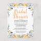 Un elegante ramo floral boho con acentos de melocotón y azul con follaje botánico. Alegre y ligero; perfecto para una ocasión de desayuno de boda en primavera o verano.