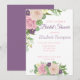Celebra a tu futura novia con esta elegante invitación de Despedida de Soltera Floral Púrpura, que presenta exuberantes flores de acuarela y delicados acentos florales en tonos suaves y vibrantes de púrpura. Perfecta para celebraciones de primavera, verano o con temática de jardín, esta invitación personalizable te permite agregar fácilmente todos los detalles de tu evento — desde fecha y hora hasta ubicación, RSVP y un mensaje personal. Impresa en cartulina de alta calidad con un color de sangrado completo vívido, establece un tono hermoso y sofisticado para tu Despedida de Soltera, ya sea que estés organizando un brunch íntimo o una reunión festiva con amigos y familiares. Combínala con tarjetas de RSVP coordinadas, sobres y papelería de fiesta a juego para crear un conjunto coherente que refleje tu tema floral elegante. Con su diseño atemporal y paleta de colores romántica, esta invitación te ayuda a causar