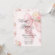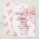 Invitación elegante de despedida de soltera con lazo de perla y floral rosa. Artículos coincidentes están disponibles.