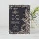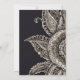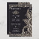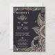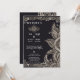 Este cautivador diseño de invitación a la boda presenta un rico lienzo negro, bellamente contrastado con adornos dorados de encaje. Los bordes están decorados con motivos florales y de viñas intrincados, lo que crea un marco lujoso que rebosa elegancia y refinamiento. A la derecha, una gran muestra de pétalos de capas y hojas giratorias llama la atención con sus detalles y profundidad artística. En el centro, un delicado emblema floral irradia encanto, equilibrando perfectamente la compleja labor fronteriza. Este diseño encarna un romance y una opulencia intemporales, lo que lo hace ideal para una celebración boda llena de gracia y grandeza.