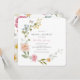 Una delicada invitación a la ducha de novias con flores acuáticas y una suave mariposa. El guión elegante y los tonos pastel crean un diseño atemporal y romántico, perfecto para celebrar a la futura novia.