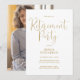 Esta elegante invitación de fiesta de jubilación con letra dorada puede ser personalizada con toda la información de su celebración especial y foto en el reverso. Diseñado por Thisisnotme©