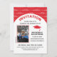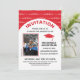 Elegante invitación de fotografía de graduación roja, diseñada para que celebres el éxito de tu graduación. Hay un pequeño gráfico superior de graduación en el mismo color de coordinación que el fondo. Por el lado de la FOTO del PERSONALIZABLE hay una sutil referencia de la Biblia Cristiana para los Efesios 3:20 - 'Dios es capaz de hacer de manera excesivamente, abundante'. El patrón de mosaico de fondo dice INVITACIÓN en la tipografía de guiones. El resto del texto es PERSONALIZABLE, por lo que puede personalizar fácilmente esta invitación a la graduación para sus necesidades específicas. Lo contrario se ha dejado claro para usted. Podrá elegir entre una amplia selección de diseños de Graduado en tarjetas, invitaciones, ropa, decoración y regalos, diseñados por los diseños bereanos. Estas invitaciones para Grad y tarjetas de agradecimiento han sido diseñadas para que coincidan con los diferentes colores académicos.