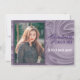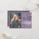 Esta elegante invitación de graduación presenta un marcador de posición para una fotografía y texto. El dorso contiene el texto adicional de la fiesta. Rellene los campos de texto con sus datos en el anverso y reverso, elimine la información no deseada y/o edite utilizando la herramienta de diseño para seleccionar un estilo de letra, tamaño y color que prefiera en ambos lados. Un formato de fotografía vertical funciona mejor para reemplazar la fotografía del marcador de posición.