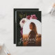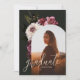 Celebra el logro de tu graduación con esta elegante y elegante invitación a graduarse. Con un llamativo fondo oscuro adornado con ricos y profundos acentos florales, y un prominente espacio arqueado para tu foto personalizado, este diseño destaca maravillosamente al graduado. Perfecto para anunciar el éxito e invitar a sus seres queridos a su celebración. Personalizable total para hacerlo único suyo.