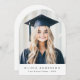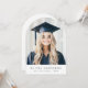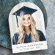 Tarjeta de invitación con forma de foto con forma de arco que muestra tu foto en la parte delantera junto con el nombre del graduado, la escuela y el año. Añadir un mensaje personalizado en la parte posterior.