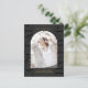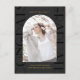 Esta moderna postal de invitación a la fiesta de graduación fotográfica presenta un elegante fondo negro y una gran tipografía con un arco de fotos geométrico frontal, detalles de la fiesta de graduación y dirección de retorno en la parte posterior.
