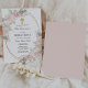 La elegante y femenina invitación a la Primera Comunión presenta hermosas rosas rosas enclavadas en un follaje verde suave decorando un marco dorado oval. Los rosas y las hojas tienen detalles purpurinas para agregar un toque de brillo. Todo el texto es editable, así que también se puede usar para cualquier tipo de ceremonia religiosa, bautismo, cristianismo, dedicación o confirmación.