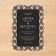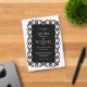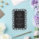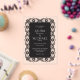 Estas elegantes invitaciones de boda acrílicas de 5" x 7" presentan un diseño de encaje falso negro con letras blancas. La introducción, "Únete a nosotros en la celebración del boda de," los nombres completos de la pareja boda, fecha boda, hora del boda, ubicación, dirección de ubicación e información de recepción.