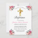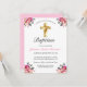 Elegante Invitación de PInk Floral Gold Cross Bapt