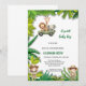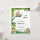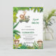 elegante invitación al safari salvaje con ducha de bebé Celebre la próxima llegada de su pequeño paquete de alegría con esta fantástica invitación a la ducha de bebé con temática de safari. El diseño incluye un grupo de adorables animales de la selva y hojas rústicas de vegetación tropical.