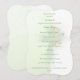 La imagen que has proporcionado tiene un diseño suave y etéreo con mucha sombra translúcida y delicada y una mezcla de degradado entre blanco y verde claro. Esta elegante plantilla abstracta de invitación cruzada floral presenta un gradiente suave de verde pastel y blanco, delicadamente mezclado con pétalos etéreos blancos y radiantes rayos de oro.