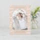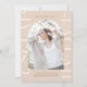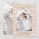 Esta hermosa invitación de graduación de dos fotos presenta elegantes colores neutros y una gran tipografía con un arco de fotos geométricas frontal, y una foto completa en la parte posterior de la tarjeta.