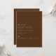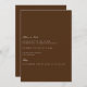 Esta elegante tarjeta de la fiesta de compromiso blanca y marrón de guiones presenta escritura moderna y texto limpio para un diseño marrón simple y elegante que le encantará. Añade texto personalizado para proporcionar cualquier información adicional necesaria para tus invitados. Siéntase libre de enviarme cualquier pregunta relacionada con el diseño - ¡estaré encantado de ayudar!