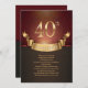 Una invitación retro con un fondo de color burgundy profundo está superpuesta con una banda dorada que contiene la palabra "aniversario" y justo encima, un "40º" dorado anuncia de qué se trata la celebración. Una invitación muy elegante y con estilo para tu ocasión especial.