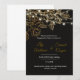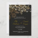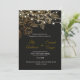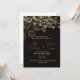 Celebre el amor con estilo con esta elegante invitación para fiesta de compromiso en negro y dorado. Con luces de cadena brillantes y acentos florales dorados, es la elección perfecta para una velada sofisticada. Fácilmente personalizable con sus nombres, fecha, hora y ubicación.