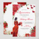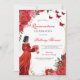 Celebre un hito con estilo con esta elegante invitación de Quinceañera que presenta a una joven con un impresionante vestido rojo rodeada de rosas y mariposas. Perfecta para honrar un cumpleaños número 15 especial, esta tarjeta diseñada con belleza establece el tono para una noche inolvidable. Con tipografía audaz y acentos florales, es ideal para reuniones familiares, celebraciones formales y fiestas inolvidables. Personalice con los detalles de su evento para crear un recuerdo que los invitados apreciarán.