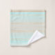 Una bonita toalla de baño a rayas, en tonos suaves turquesa y arena. Hermoso para una casa de playa o un espacio de vida costero, así como un baño de diseño de colores pastel.