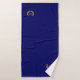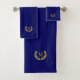 Elegante dorado como laurel y monograma dorado sobre el juego de toallas de baño azul marino.