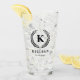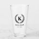 Vidrio de cerveza monogramado para tu mejor hombre con su inicial dentro de una corona de laurel con su nombre debajo.