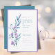Esta encantadora invitación a las bodas tiene un hermoso arreglo floral acuático en tonos violeta y lavanda. El ambiente es suave y romántico, ideal para las parejas que buscan una estética clásica y elegante. Este diseño es fácil de personalizar, lo que le permite añadir sus datos personales y crear una invitación de boda que refleje su estilo único. La paleta de colores suaves complementa varios temas bodas, desde rústicos hasta modernos. Haga que su día especial sea aún más memorable enviando estas impresionantes invitaciones.