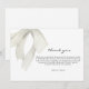 Expresa tu gratitud con nuestra tarjeta de agradecimiento "She's Tying the Knot" con lazo blanco elegante. Este diseño simple pero sofisticado presenta un delicado lazo blanco, con texto negro editable que te permite personalizar tu mensaje. Es la forma perfecta de agradecer a tus invitados por su amor y apoyo durante tu despedida de soltera. Hazles saber cuánto significaron su presencia y regalos para ti mientras comienzas tu viaje por el pasillo con esta hermosa y discreta tarjeta.