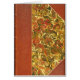 Viejo encuadernador de carátulas de cuero, con un patrón de giro espiral ornamental.