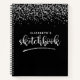 Un purpurina blanco y negro y plateado fresco personalizado de 8.5 x 11. Las palabras "Elizabeth's Sketchbook" Personalizar el cuaderno de bocetos con el nombre de su elección para hacer que alguien se sienta especial. Hace un regalo divertido para cumpleaños o Navidades. Viene en una variedad de colores. Diseñado para ti por Blackberry Boulevard.