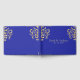 Un rico y elegante libro de invitados de bodas con damasco dorado y azul real. Este libro de bodas es parte de un juego de invitaciones a la boda.