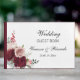A sus bodas les encantará este libro de visitas con flores. Con un hermoso rociado de rosas borgoñosos y ondulados y peonías por los costados, tienes amplio espacio para tus nombres. Personalice el uso de sólo sus nombres y la fecha de su boda. Se ha utilizado el guión de boda clásico. Esto es parte de nuestra colección de flores de Borgoña. Tómese un momento y busque elementos coincidentes y coordinados.
