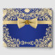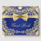 Libro de invitados azul y dorado con arco de joyas doradas sobre un elegante fondo azul real y dorado. Usted puede fácilmente personalizar este hermoso libro de visitas real azul y oro para su evento simplemente agregando el texto de su elección en el estilo de letra que usted prefiere. Se trata de un diseño impreso sin arcos, joyas, etc.