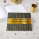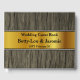 Este respetable libro de visitas boda/fiesta matrimonial incluye el mensaje "Libro de invitados Bodas", los nombres personalizados de la pareja casada y la fecha de la fiesta nupcial. También cuenta con un fondo con un patrón rústico de imitación de madera, y una bandera de imitación de oro. Se podría usar para registrar deseos felices para la pareja recién casada.